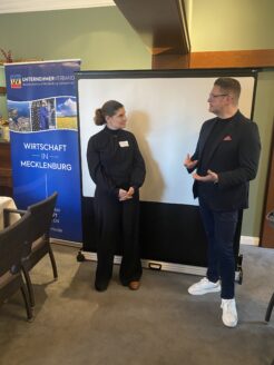 Im Anschluss zeigte Michael Jastram, Abteilungsleiter Firmenkunden und Immobilien der Sparkasse Mecklenburg-Schwerin gemeinsam mit Geschäftsführer Felix Zech von der SchweSa-Haller GmbH, wie solch eine Nachfolge beispielhaft gelingen kann – gemeinsam mit der Bürgschaftsbank.